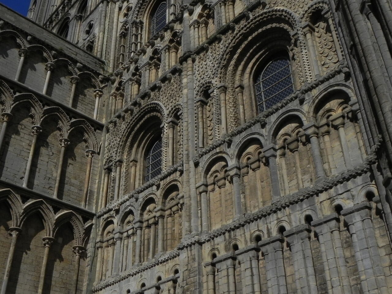 Ely, katedra - romańskie okna i zdobienia bocznej elewacji