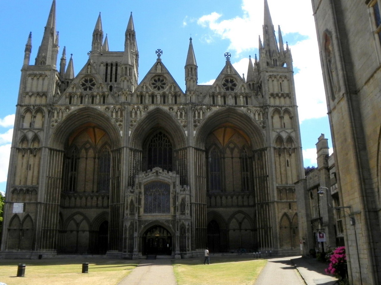 Peterborough, katedra - fronton, ogromne portale schodkowe