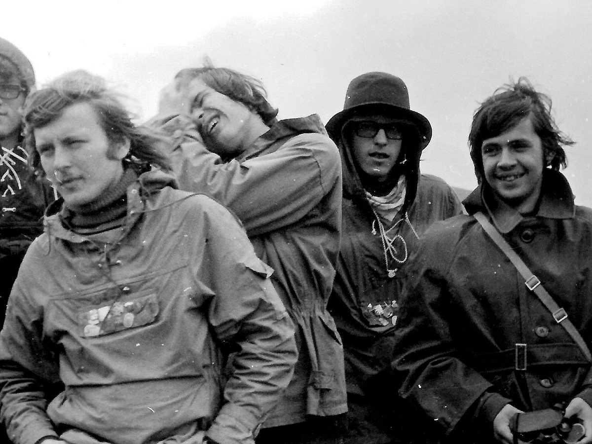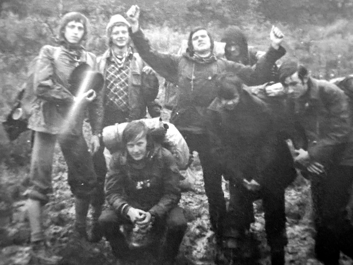 Kolejnego dnia - 20 VII wyruszamy z Wetliny do Ustrzyk Górnych. Już w deszczu, przez wysokie krzewy jagód na połoninach Działu idziemy na Wielką Rawkę (1307). Z Wielkiej Rawki „zjeżdżamy” ślizgami do Ustrzyk Górnych, zdobywając przy okazji Błotną Odznakę Turystyczną. Jesteśmy mokrzy i obłoceni więc nie chcą nas przenocować w schronisku PTTK nawet na podłodze, chyba nawet nie chcieli nas wpuścić. Cały czas pada, ale dzielnie rozbijamy więc namioty na polu namiotowym.